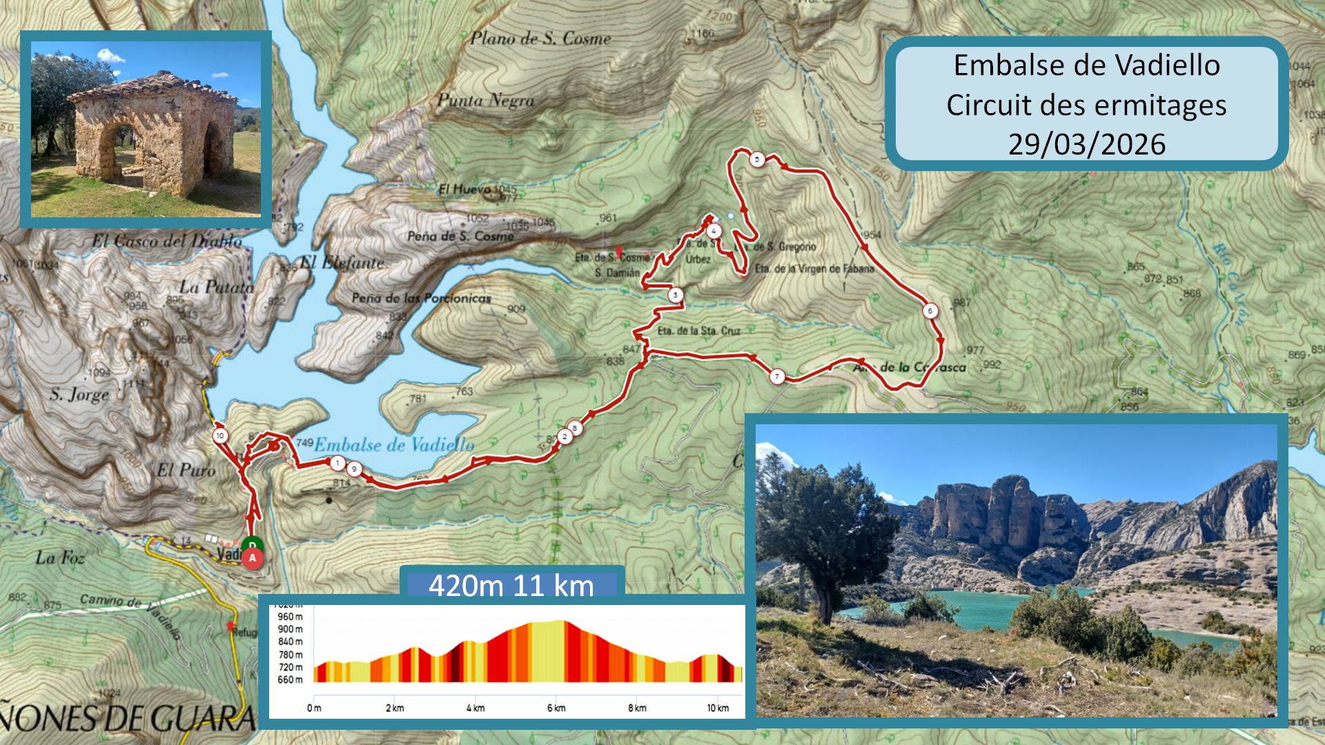 29/31-03-2026 Photos D. Dié – Séjour Sierra de Guara – jour 1 – Embalse de Vadiello – Circuit des Ermitages avec M. Saux et D. Dié